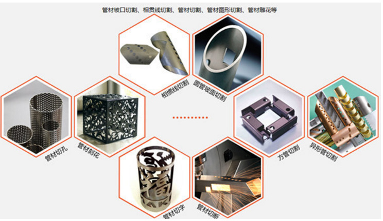 三維(wéi)機械手激光切割機主要(yào)適用於(yú)三維金屬工件的激光加工,如:汽車門窗,排氣管道,等三維異形工件的激光加工。